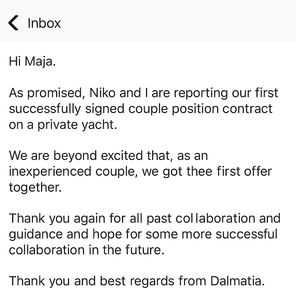 A young couple landed one of the hardest jobs in yachting, a couple’s position, after following The Elite Method™. With their salaries, they are on their way to built their dream home.